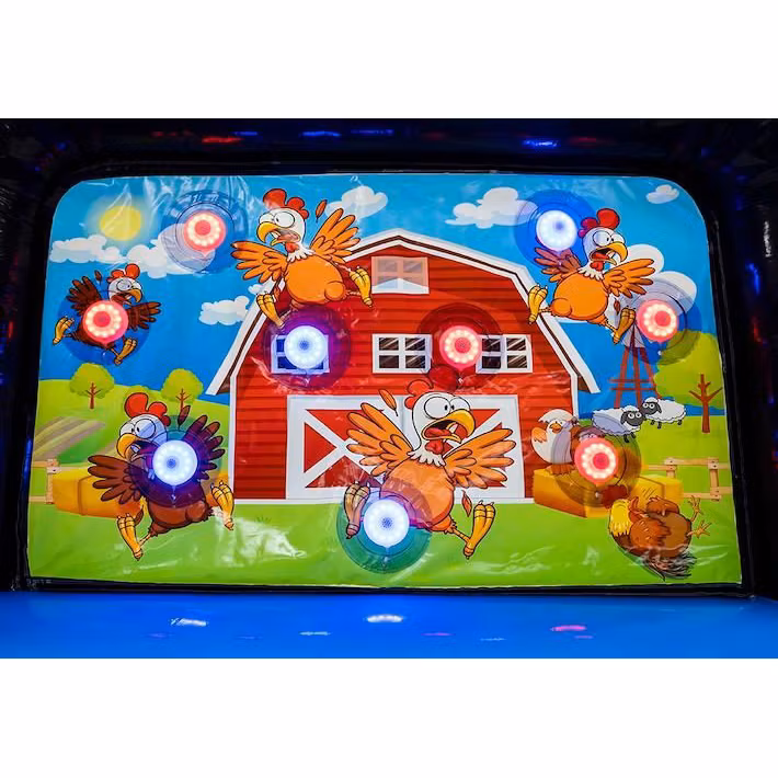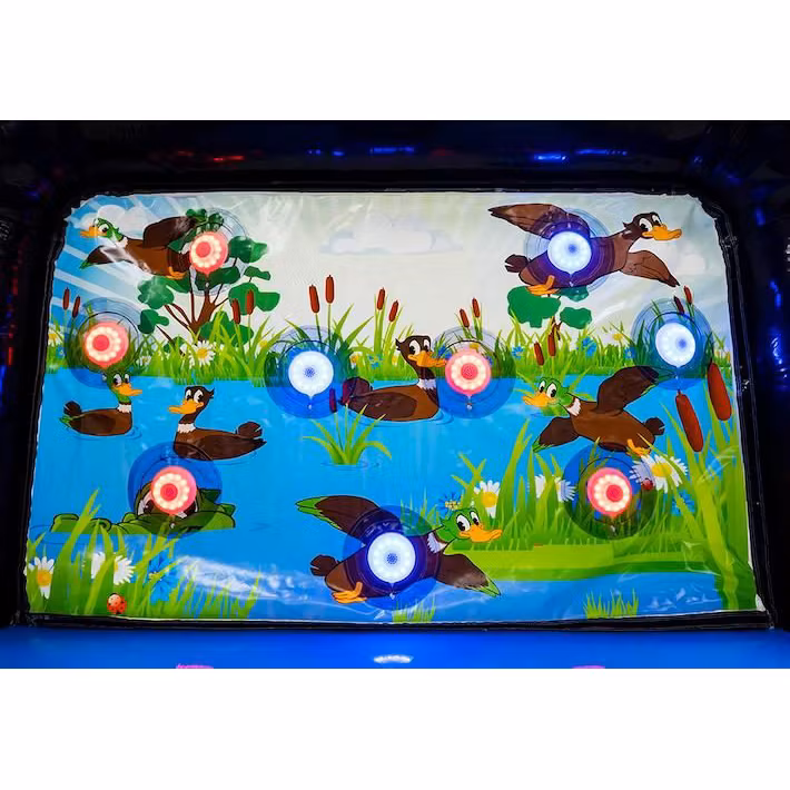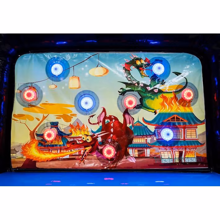 Dieser interaktive Mini-Schießstand ist ein Muss! Für zwei Teilnehmer, die sich gegenseitig in einem Kampf herausfordern und versuchen, so viele Ziele wie möglich zu treffen, beispielsweise mit Nerf Blasters, Gellyball Blasters oder Archery Tag-Bögen.