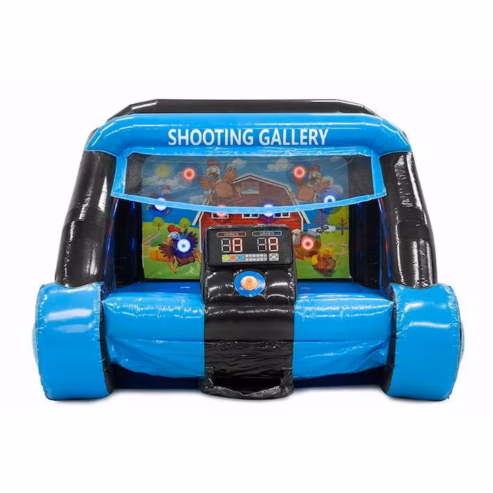 Diese langlebigen Schießstände haben mehrere verstärkte Spannungspunkte und sind mehrfach vernäht. Der robuste, hochwertige PVC-Kunststoff ist langlebig und leicht sauber zu halten. Mit diesem Produkt können Sie ein optimales Spielvergnügen bieten.