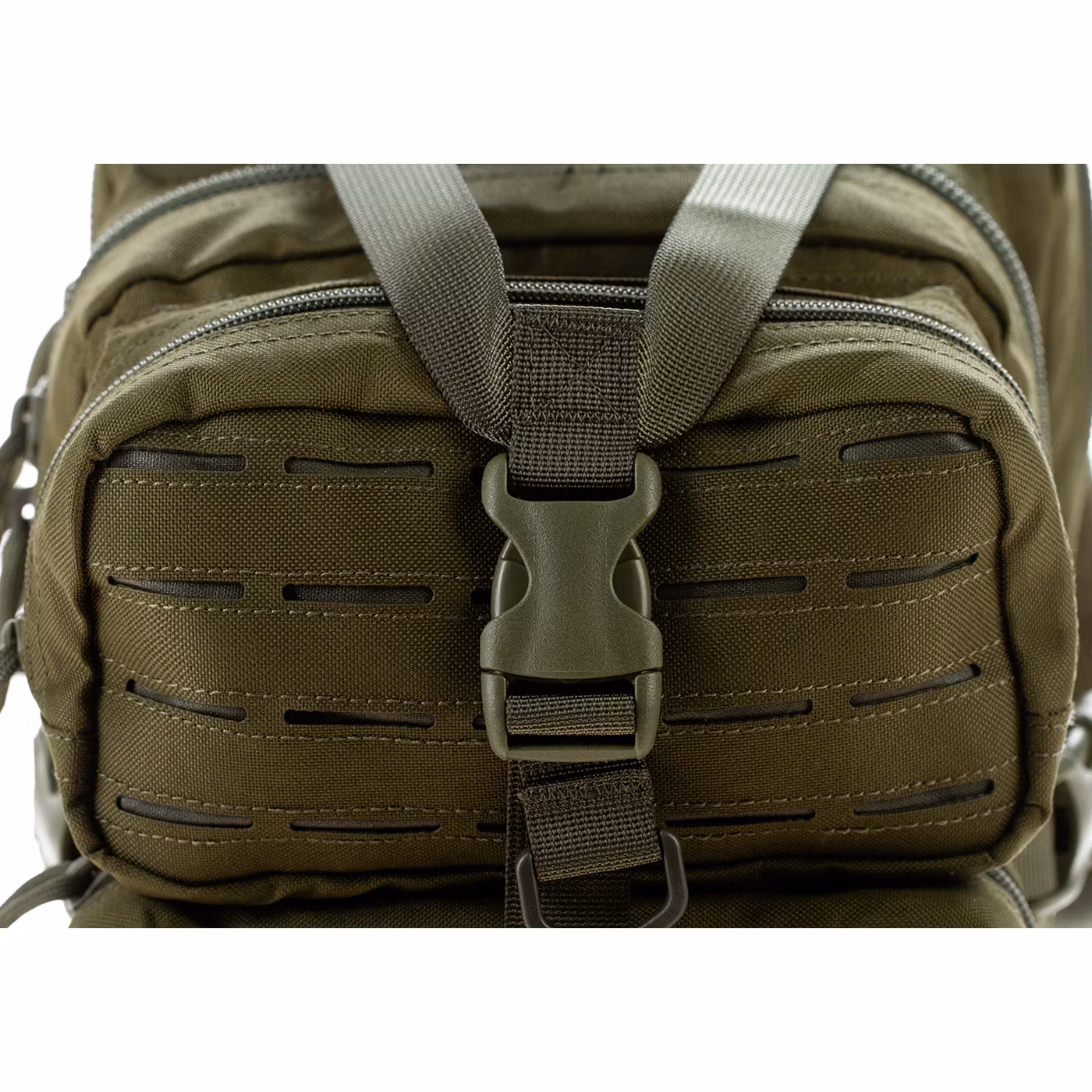 Rucksack von Invader Gear, der so konzipiert ist, dass er genug Ausrüstung für einen Tag enthält. Verfügt über Molle-Verschlüsse für die Möglichkeit, zusätzliche Taschen und Zubehör anzubringen.