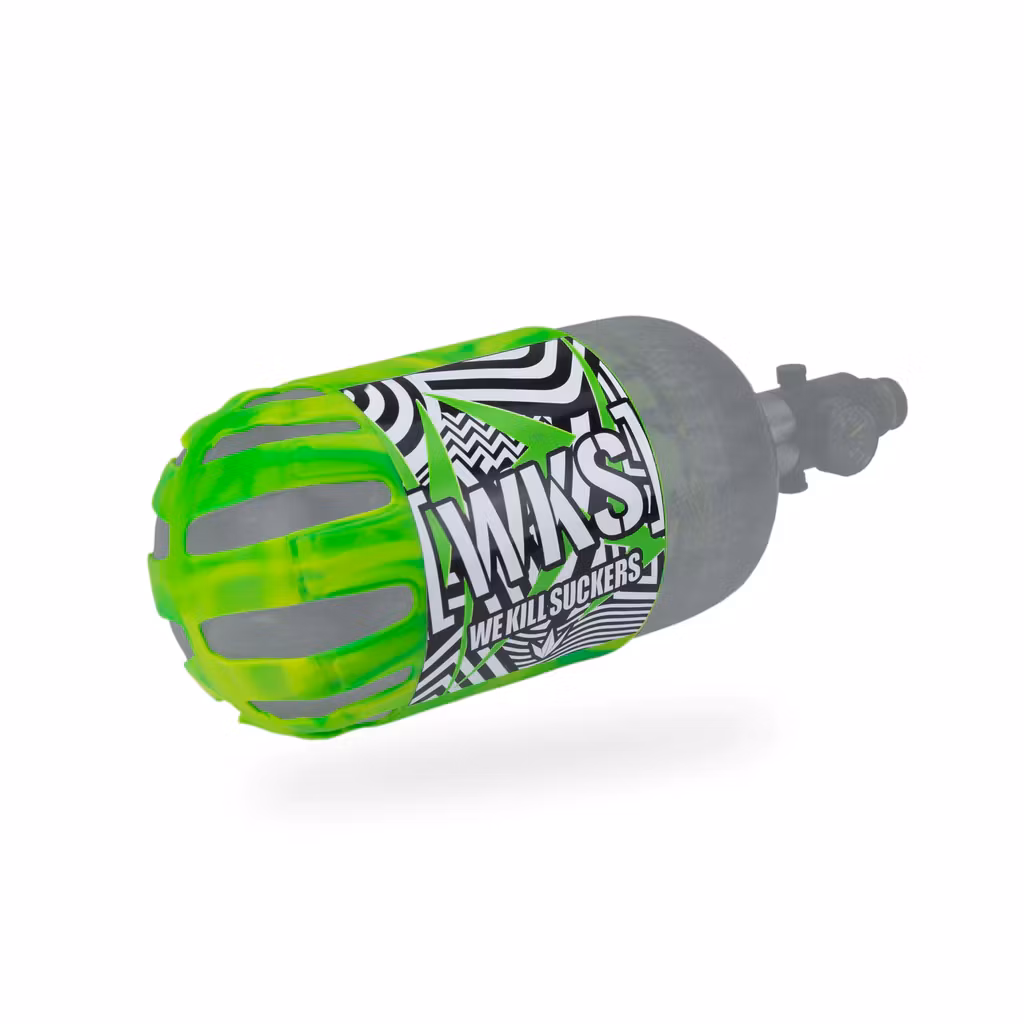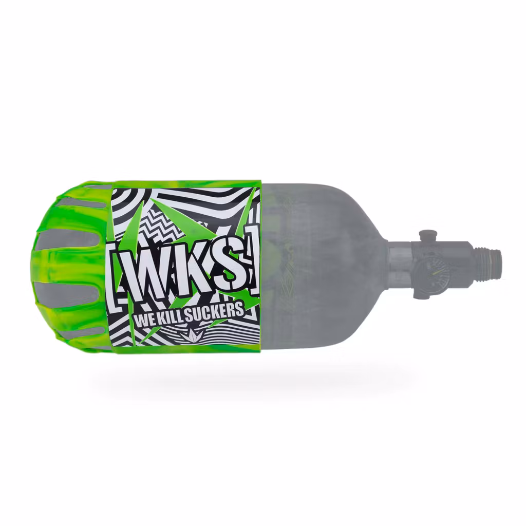 Bunkerkings Knucklebutt är en perfekt kombination av ultra tåligt tank skydd, avancerat axelgreppsräfflor och Bunkerkings unika stil. Tillverkad av anti-tear Elastomer som ökar tåligheten och gör det lättare att använda skyddet. Tillverkad för att   passa alla sorters tankar. Knucklebutt's unika design låter dig smidigt kolla tankens senaste test datum genom att rulla ner kanten, utan att   behöva ta av hela skyddet, så tanken blir godkänd på några sekunder. Bunkerkings stil är alltid det bästa med Knucklebutt, designade med häftiga motiv direkt från gatorna i New York.