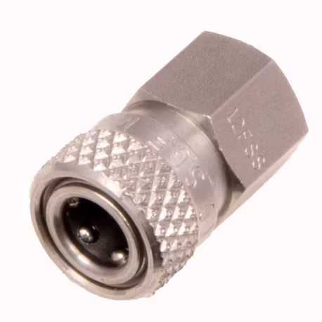 Ninja Female QD SS $23.17 A Quick Disconnect coupling in stainless steel. Withstands up to 5000psi. Comes with an internal 1/8" NPT thread. The product is currently out of stock. Share Article Number: 1366 Information Reviews A quick disconnect connection made out of steel. Can handle up to 5000psi. Sold with a inverted 1/8" NPT-threads.