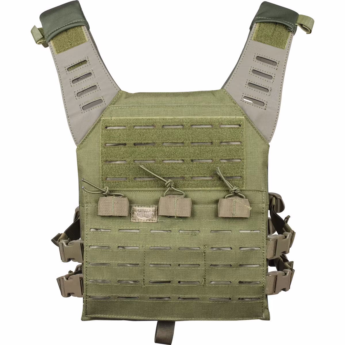 The Valken Laser Cut Plate Carrier is an update of the Valkan Plate Carrier II vest. It is an airsoft tactical vest with laser cut MOLLE attachment points located on the front and back, as well as on the shoulder straps. They are made from high durable nylon fabric, and include soft foam “dummy plate” inserts in the front and rear plate bags. This airsoft vest comes with adjustable side straps, and have built-in a triple M4 magazine pouch with elastic cord retention. The Valken Laser Cut Plate Carrier also has lightweight adjustable shoulder straps with integrated radio and hydration tube shoulder guides. We also recommend using Valken Multi-Rifle Magazine pouches to increase your tactical load capacity.