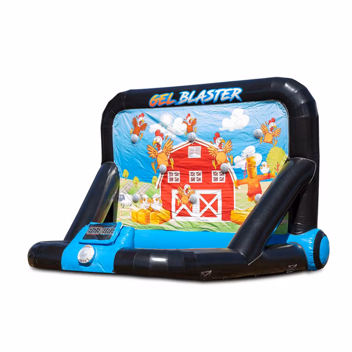 ¡Un juego de disparos interactivo en el que disparas a pollos, patos o zombis con lanzadores de bolas de gel! El juego tiene un diseño intercambiable, para que puedas elegir lo que mejor se adapte a tu juego.