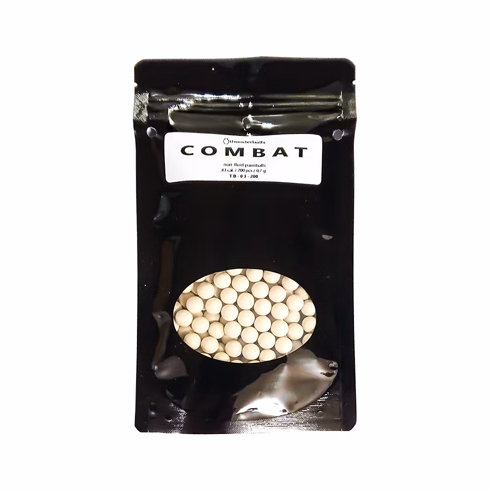 Las Thunderballs COMBAT son bolas de pintura sin líquido destinadas al paintball magnético y al entrenamiento de fuerza sobre fuerza. Suaves y quebradizos, marcan un objetivo y se hacen añicos al impactar. Los proyectiles son adecuados para su uso con marcadores de paintball de CO2 o HPA, incluidas pistolas y rifles RAM (Real Action Marker), T4E (Training For Engagement).