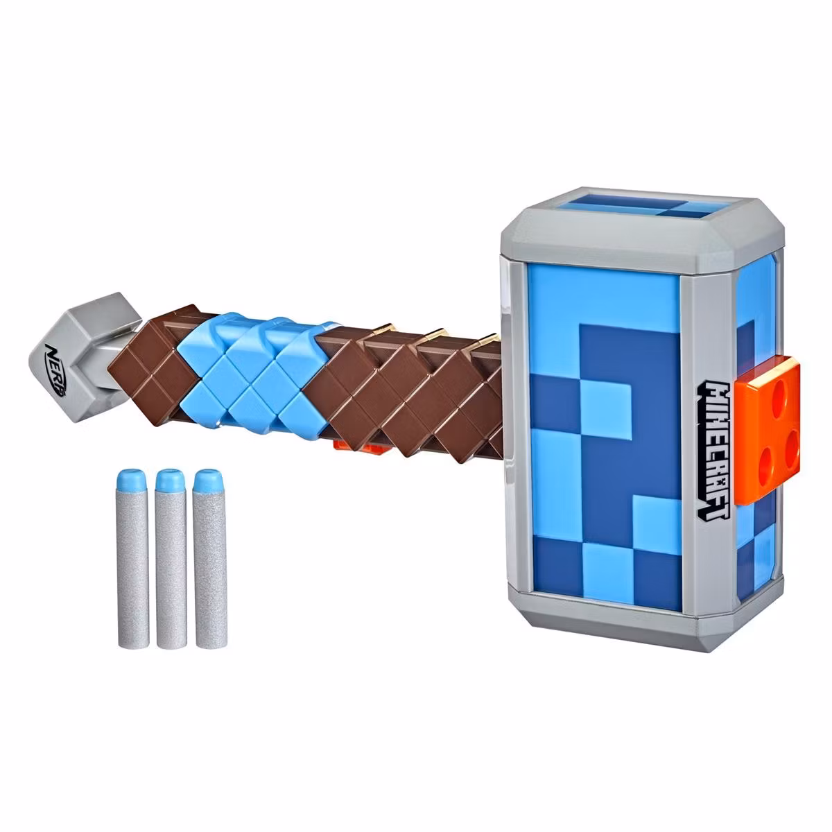 Nerf och Minecraft går samman för att skapa unika blasters som förändrar striden! Nerf Minecraft Stormlander-hammaren har inspirerats av Minecraft: Dungeons, och ser ut som hammaren i det populära spelet. Hammaren rymmer tre Nerf Elite-pilar och avfyrar en pil åt gången.