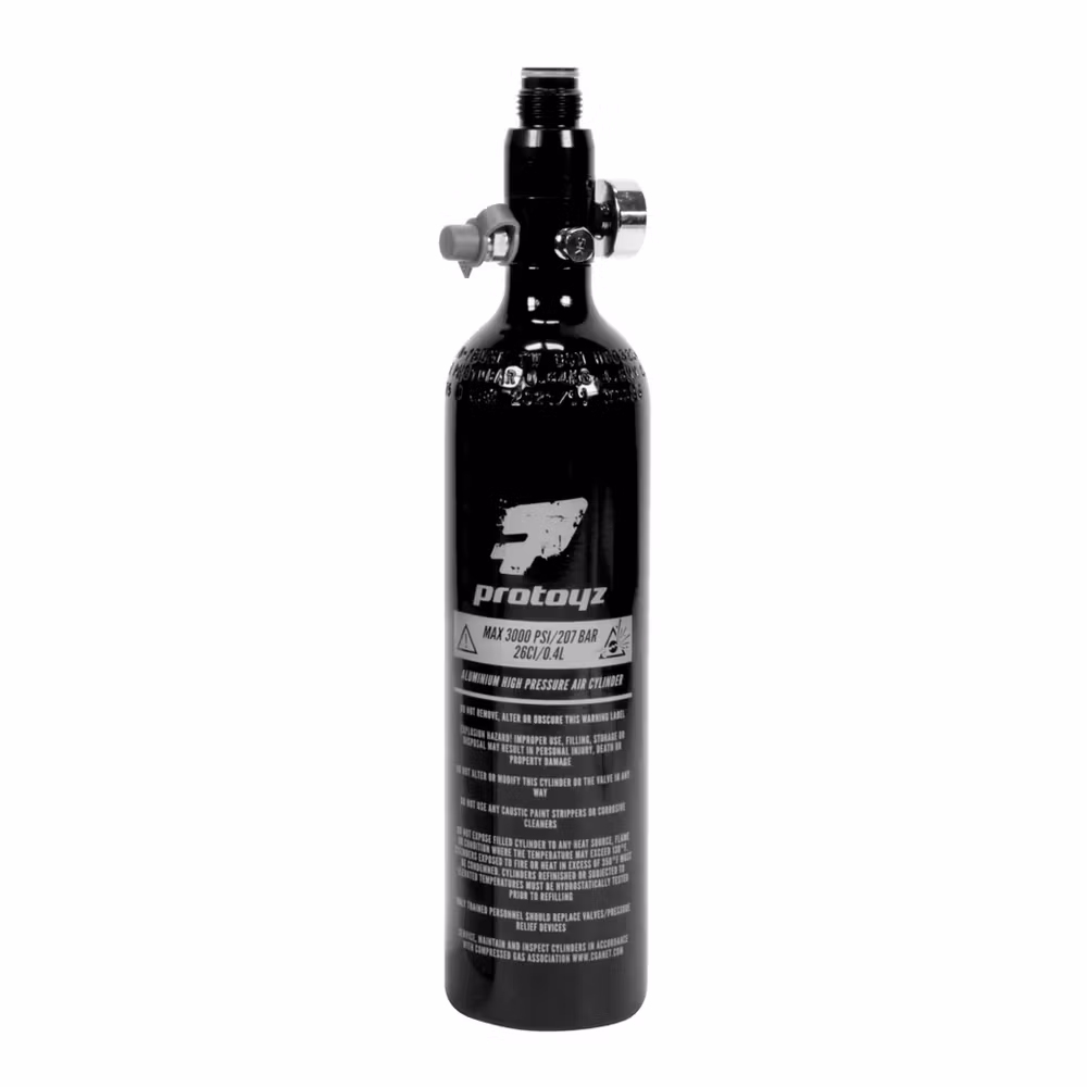 Komplett högtrycksluftsystem med regulator och gasflaska. Ett högkvalitativt startkit för att driva din paintballmarkör.