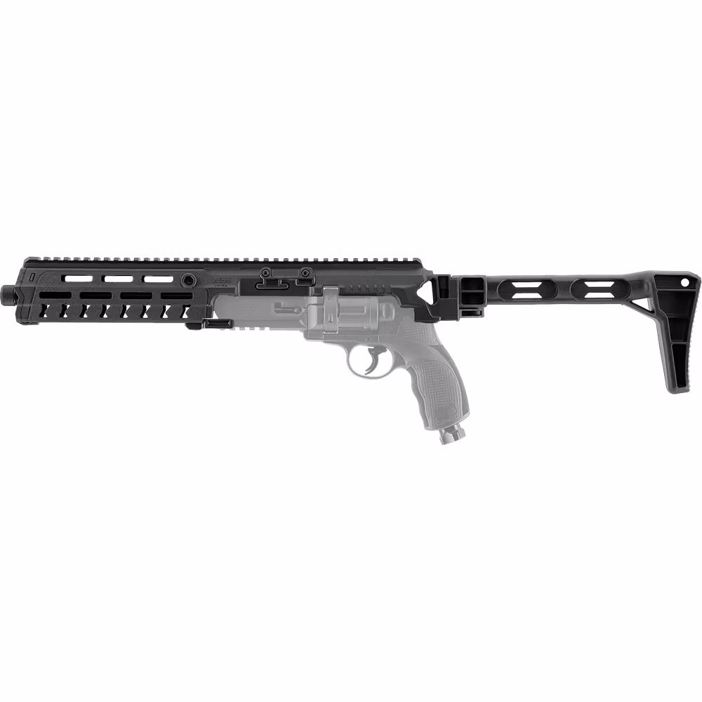 Detta imponerande Karbin konverteringskit öppnar upp nya möjligheter för dig och din T4E HDR 50 / TR 50 revolver. Revolvern som monteras i den får de överlägsna ergonomiska egenskaperna hos kompakta gevärssystem och är kompatibel med deras tillbehör.
