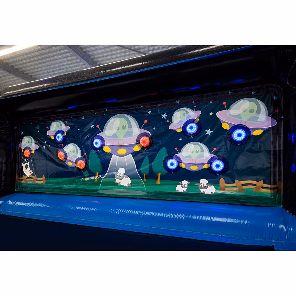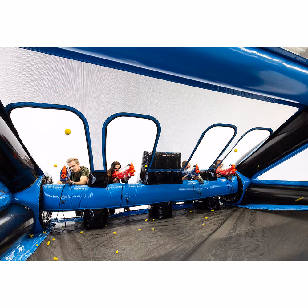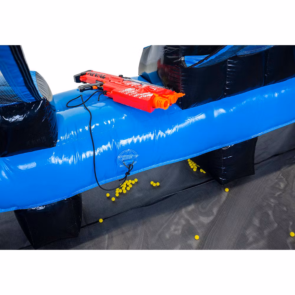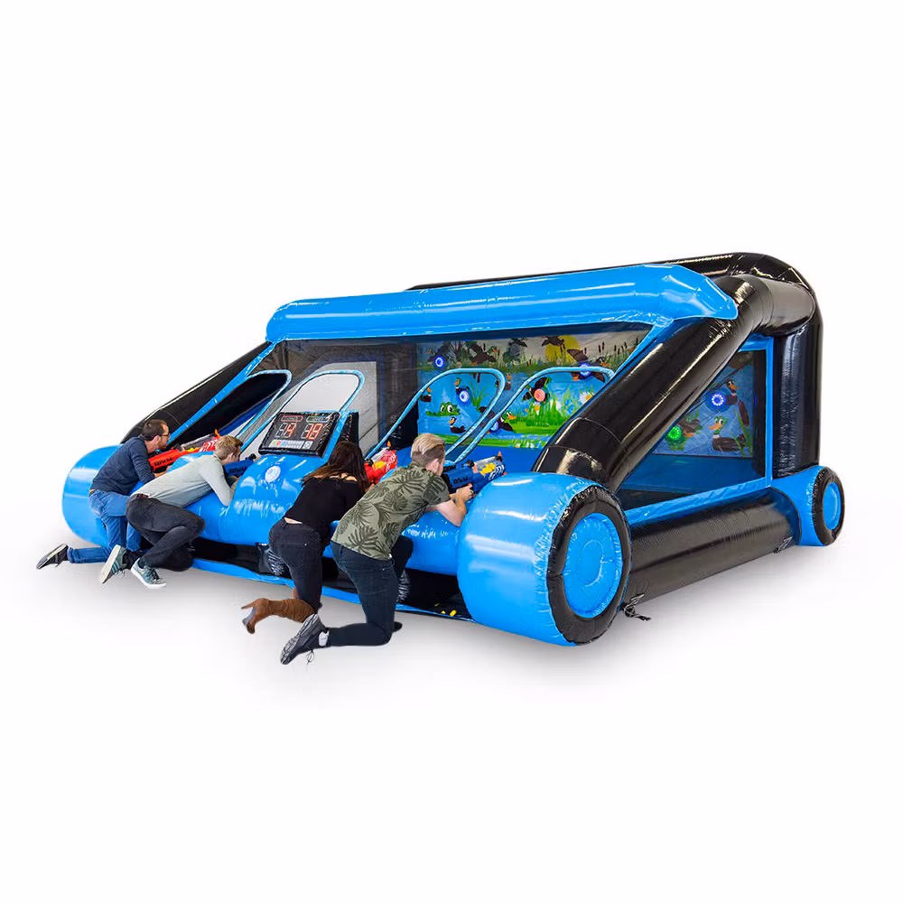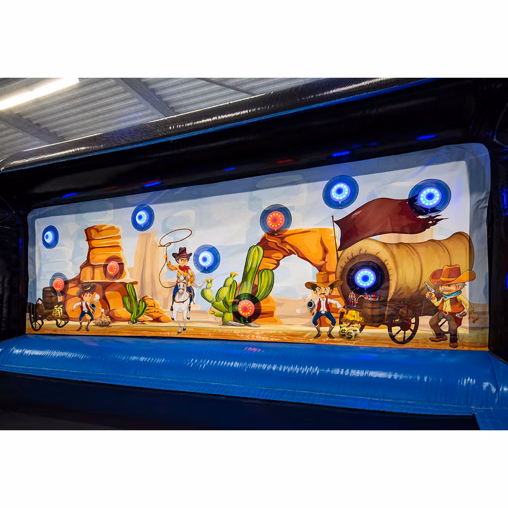 Ta interaktywna strzelnica jest koniecznością! Dla dwóch lub czterech uczestników, którzy rzucają sobie wyzwanie w walce, próbując trafić jak najwięcej celów, na przykład miotaczami Nerf, miotaczami Gellyball lub łukami Archery Tag.