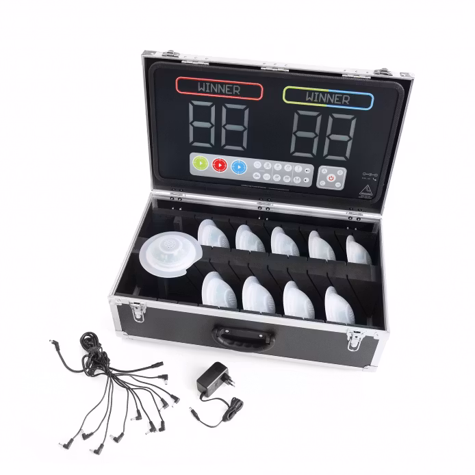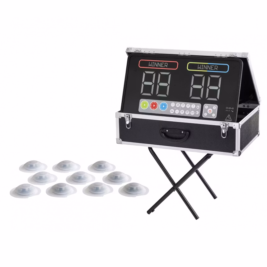 Zawiera tablicę wyników, 10 punktów wytrzymałości, ładowarkę do punktów wytrzymałości oraz tablicę i torbę transportową.
