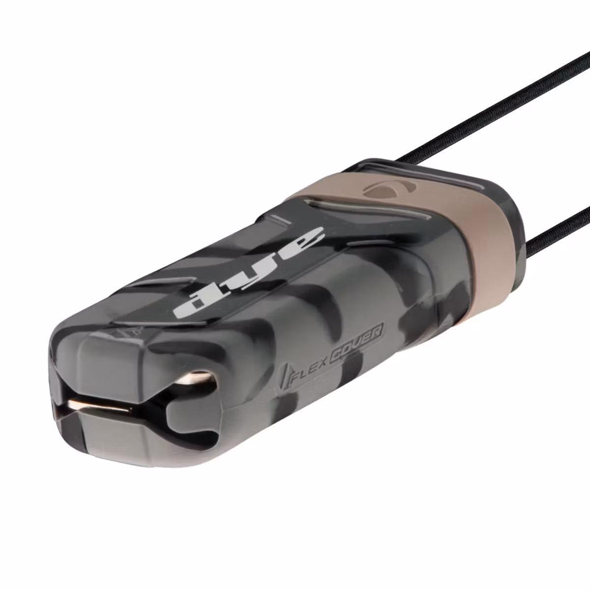 Det helt nya DYE Flex Barrel Cover med patentsökt invändigt utrymme för två kronverktyg ger högsta bekvämlighet och åtkomlighet med 1/8” och 3/16” insexnycklar. Nu är det slut med att famla efter insexnycklar vid kronostationen. För högsta säkerhet finns det en unik intern kulstoppspyramid som säkerställer att varje avfyrad kula delas vid träff och centrerar pipan för perfekt passform när den är fäst vid markören.